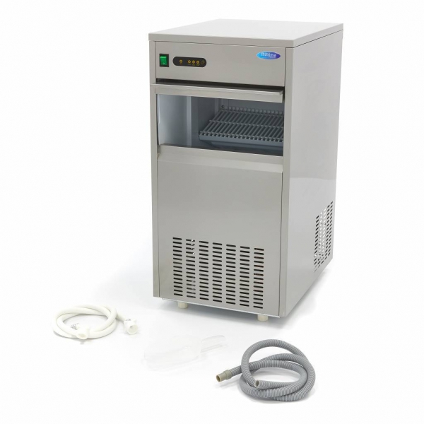 Ledomat za izdelavo kock. Nastavljive noge omogočajo, da si lahko po lastni želji nastavite višino. Kapaciteta proizvodnje ledu je 60kg / 24h