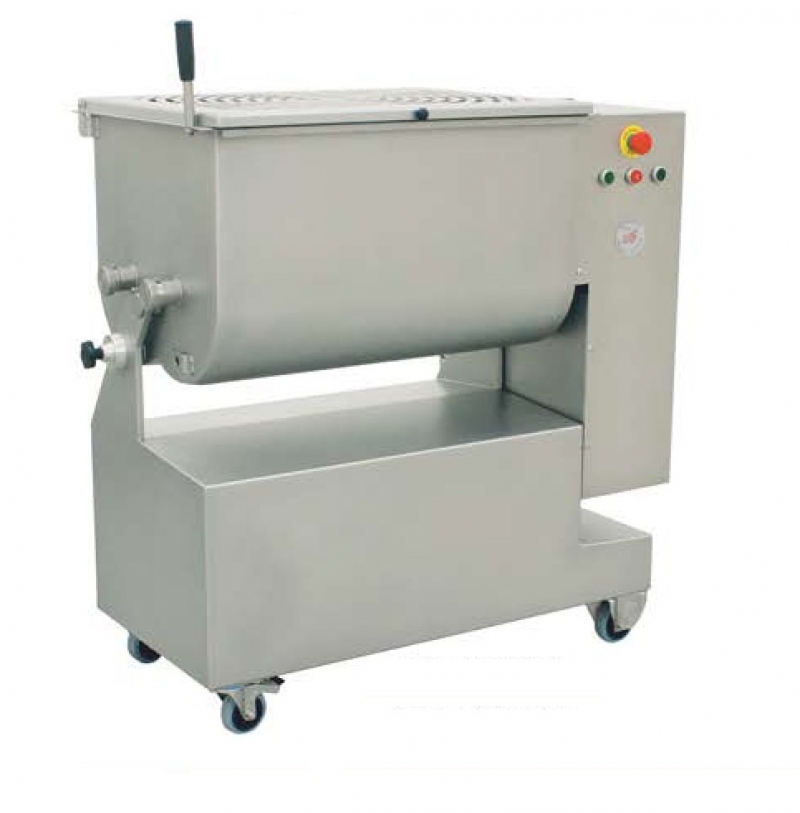 Profesionalni mešalec za meso, priznane italijanske blagovne znamke CGT. Mešalec je namenjen mešanju večje količine mesa za klobase, salame, mase za čevapčiče ipd. Opremljen je z dvema mešaloma, katera se pri čiščenju lahko odstranita. Mešala mešata v obe smeri, posoda se pri praznjenju mase nagne do 90 °. Zaradi večje varnosti je mešalec opremljen še z mikro stikalom, zaščitnim pokrovom in 24V krmiljenjem.