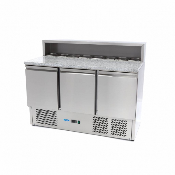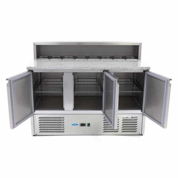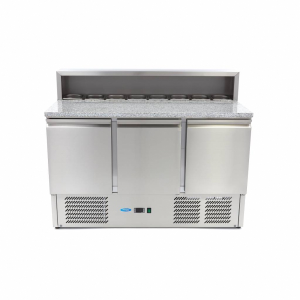 Luksuzni pizza pult z inox ohišjem in granitno delovno površino. Volumen 8 x 1/6 GN posodic.