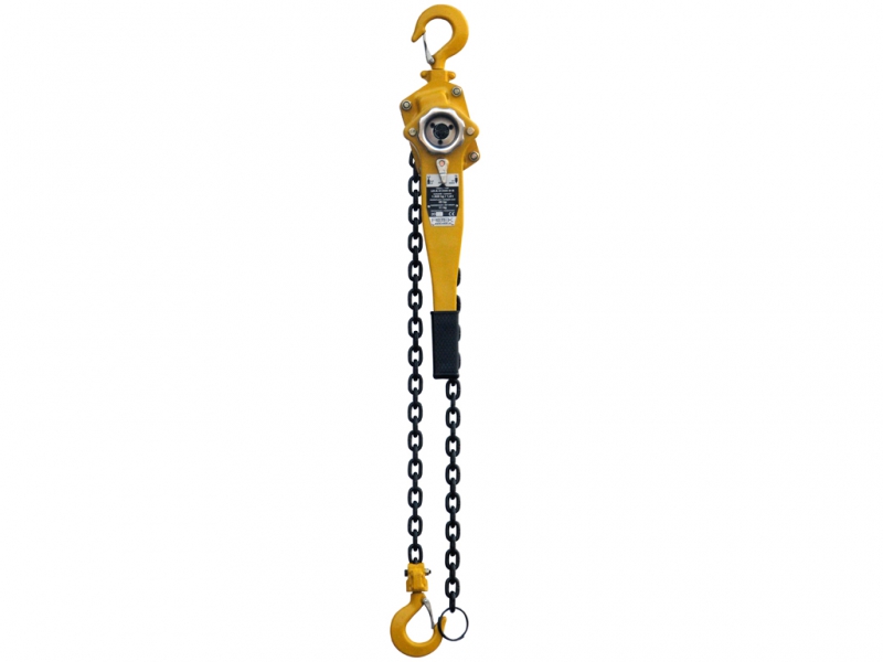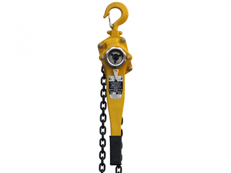 Verižni poteznik z zmogljivostjo 1500kg 1.5T in verigo dolžine 1.5 m.