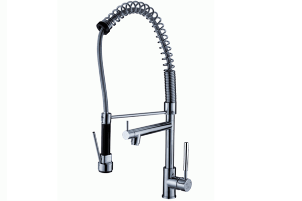 Kuhinjska armatura s tušem. Primerna za nadpultno montažo.