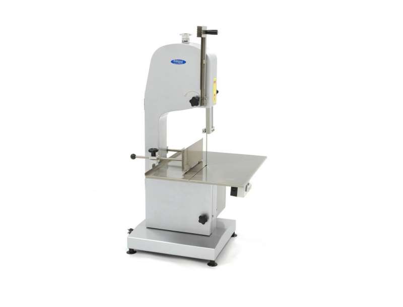 Cena z DDV:Tračna žaga za meso / kosti za gostinstvo / mesnico z motorjem 1100 W - 230 V. Ta močan in kompakten stroj je primeren za profesionalno uporabo. List žage je dolg 2040 mm, širok 19 mm. Debelina reza 5 do 200 mm. Višina reza 290 mm. Zavora motorja ob prekinitvi ustavi list v 0,2 sek.