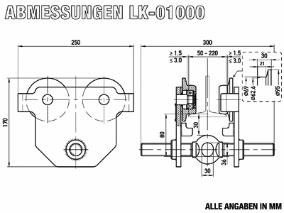 Maček - voziček za verižna dvigala in poteznike do 1000 kg.Primeren za montažo na I profile od 50 - 220mm.