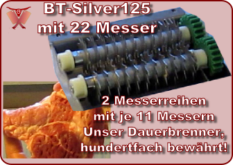 Mehčalec zrezkov z 22 inox rezili dolžine 12cm.Primeren za uporabo v gostinskih obratih, kakor tudi za domačo uporabo. Zelo enostaven za uporabo in čiščenje.Primeren za vse vrste mesa brez kosti. Zrezki pripravljeni z mehčalcem zrezkov obdržijo svojo obliko (se manj krčijo), čas pečenja pa se bistveno skrajša. Pri pripravi marirad, bodo okusi še bolj intenzivni.