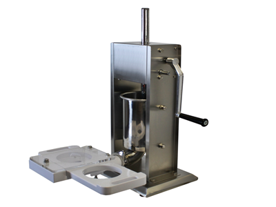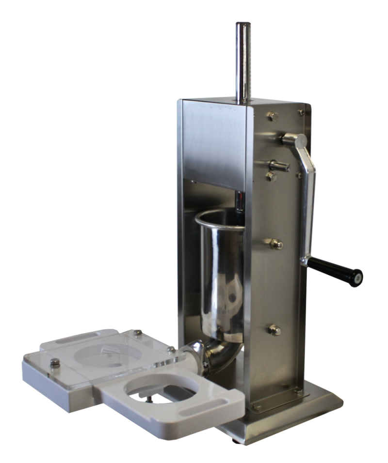 Polnilka za polnjenje klobas,salam in izdelavo pleskavic, kapacitete 3 lit. Polnilka je v celoti izdelana iz visoko kavostnega nerjavečega jekla.(SGS certifikat) Dvojno zobniško razmerje omogoča dve hitrost in sicer; počasno polnjenje, ter hitro izvleko potisnega bata. Bat je opremljen z silikonskim tesnilom in odzračevalnim ventilom. Kompletu so dodani 5 tulcev in 3 tesnila, ter naprava za izdelavo pleskavic.