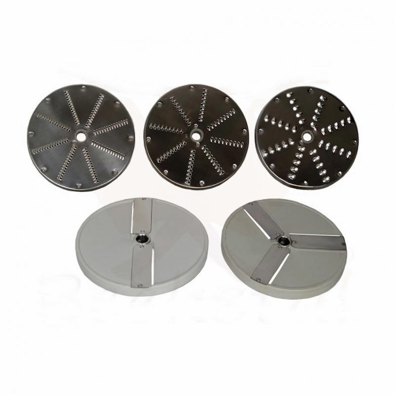 Univerzalni stroj za rezanje zelenjave in ribanje sira. Opremljen je s petimi različnimi noži, za različne načine rezanja in ribanja. Zelo primeren za gostinske obrate.