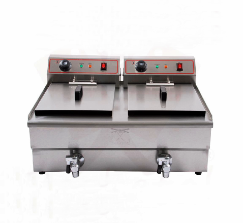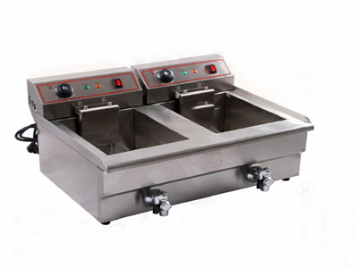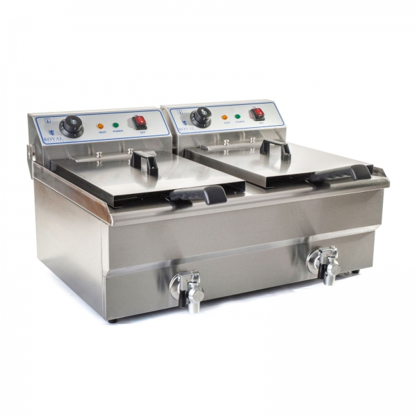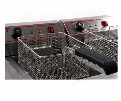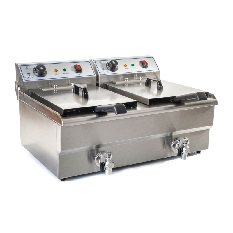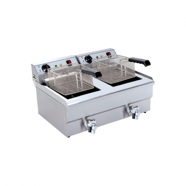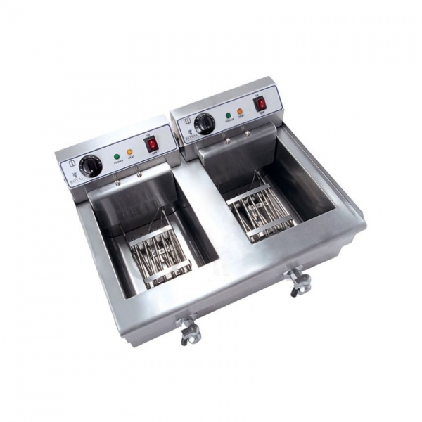 Električna friteza volumna 2 x 13 lit. Ohišje in košara sta izdelana iz nerjaveče pločevine. Friteza je opremljena s termo ročajem, odtočno pipo in termostatom.