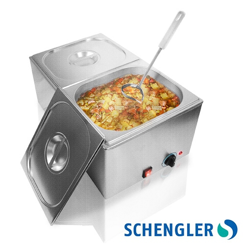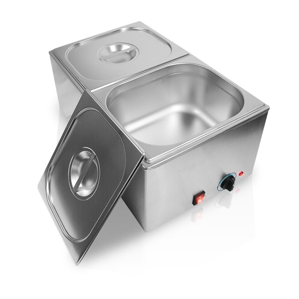 Material nerjaveče jeklo INOX Vložek 2 x GN 1/2 (150 mm) Dodatni varnostni termostat Temperatura max 90 ° Napajanje 230 V / 50 Hz Poraba moči 1200 W Dimenzije 540 x 340 x 250 mm Teža 11,5 kg