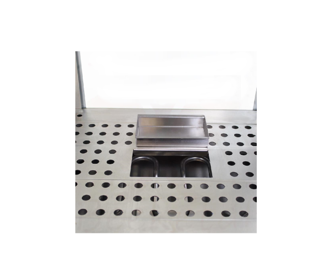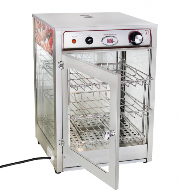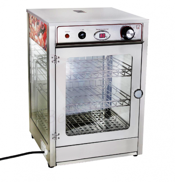 Toplotna vitrina BT-1 je primerna za shranjevanje oziroma razstavljanje različnih termično obdelanih jedi. Toplotna vitrina ustreza potrebam različnih gostinskih obratov, saj jo lahko postavite na vsako mizo ali šank. Vitrina je zelo priljubljena v pekarnah, večjih podjetjih, hotelskih sobah ipd. Deluje v temperaturnem razponu od 30 ° C do 80 ° C, temperaturo pa določate s pomočjo termostata. Konstrukcija je izdelana iz nerjavečega jekla, ki zagotavlja dolgo življenjsko dobo. Grelna vitrina ima tri poličke.