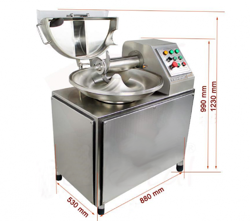 Kuter, stroj za izdelavo mesnega testa (hrenovke, safalade, posebna salama,pariška, mesni sir...) V celoti izdelan iz inox-a. Kuter je opremljen s tremi noži. Volumen posode 20 lit. Kapaciteta kutiranja cca. 10kg mesnega testa. Primeren za mesno predelovalne obrate.