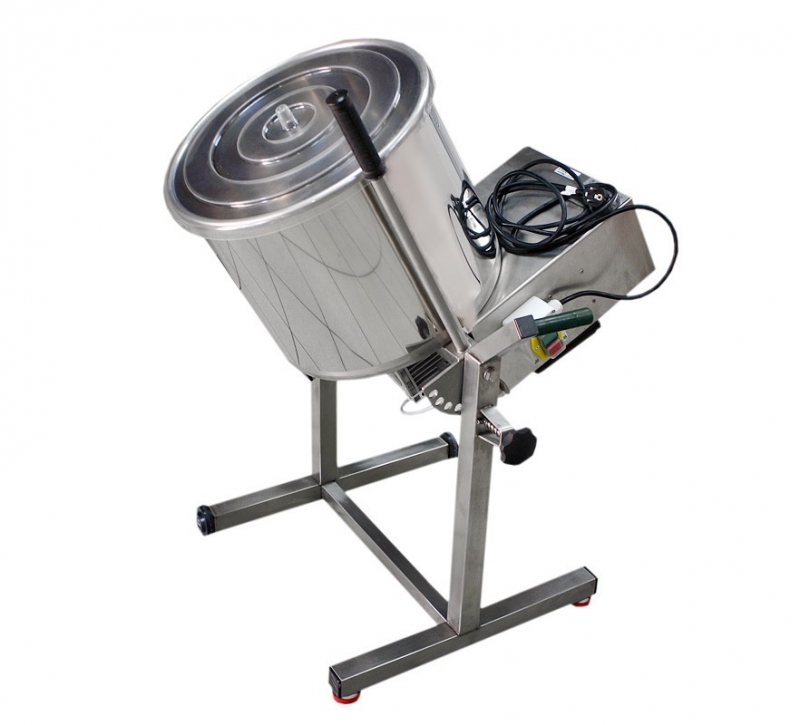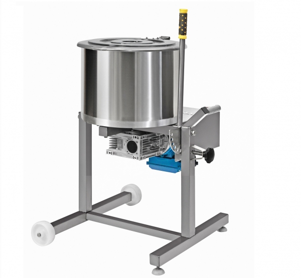 Mešalec za mešanje mesne mase,(klobase, salame,) v celoti izdelan iz nerjavečega inox materiala. Volumen 80 lit. Največja dovoljena obremenitev mešanja je 50kg mesa ali 6 - 20kg moke. Za lažje in bolj učinkovito mešanje poskrbi nagibna posoda, katero je mogoče nagniti v katerikoli položaj. Mešala so v celoti odstranljiva, kar pripomore k lažjemu čiščenju. Mešalec je opremljen še s kolesi in pokrovom. Ustreza vsem HACCP kriterijem.