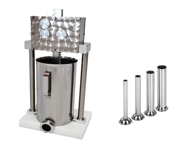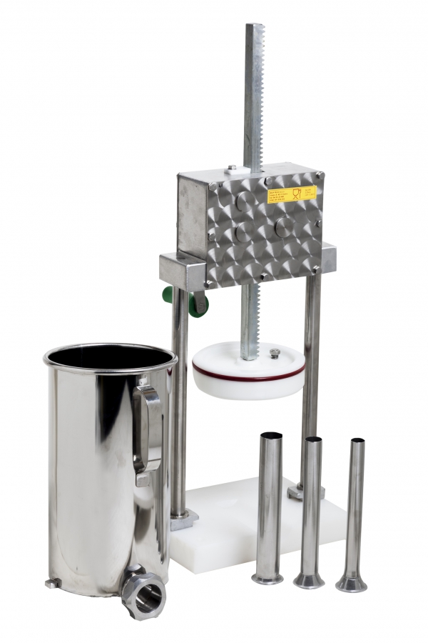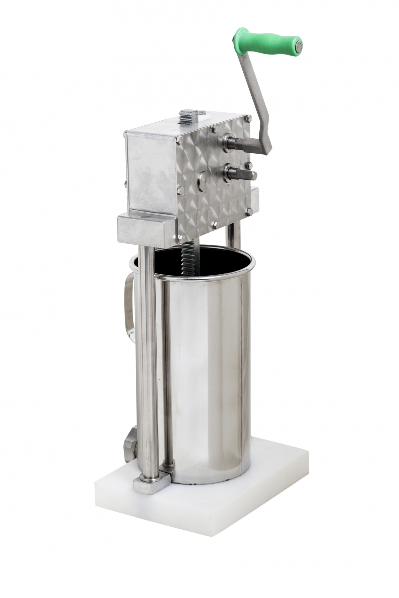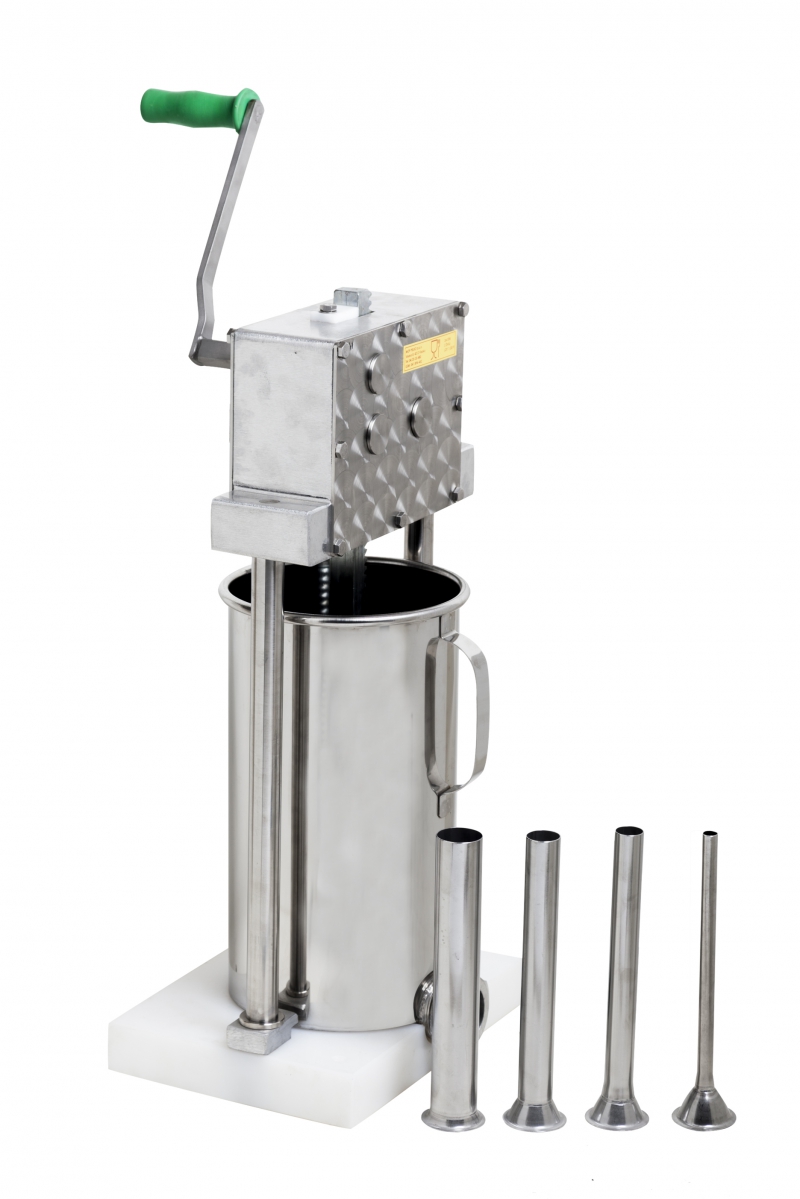 Polnilka za polnjenje klobas in salam, s kapaciteto polnjenja 10 litrov. Polnilka je v celoti izdelana iz visoko kavostnega nerjavečega jekla. Zelo robustne izdelave. Dvojno zobniško razmerje omogoča dve hitrost in sicer; počasno polnjenje salam ter hitro izvleko potisnega bata. Bat je opremljen z silikonskim tesnilom in odzračevalnim ventilom. Kompletu so dodani 4 tulci. Polnilka je primerna za vse vrste klobas.