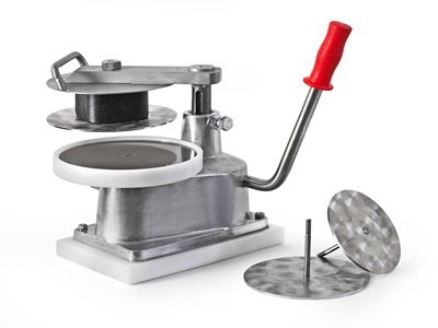 Preša za formiranje pleskavic s tremi različnimi nastavki. Močna robustna izvedba. Preša je v celoti izdelana iz inox in koterm materiala .