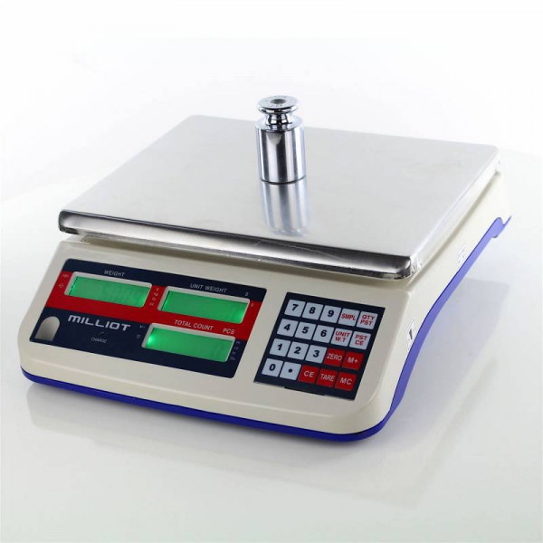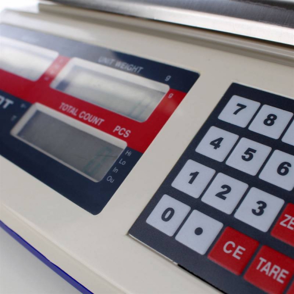 Tehtnica za kosovno štetje. Maksimalna obremenitev je 30kg z natančnostjo 1g. Tehtalna površina je iz nerjaveče pločevine, ohišje pvc. Tehtnica je opremljena s številnimi funkcijami.