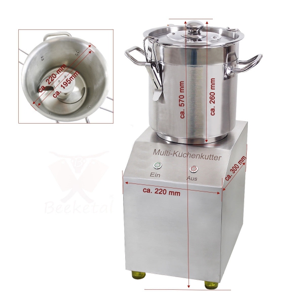 Namizni kuter, s posodo volumna 5 litrov. Kuter je primeren za uporabo v gostinskih obratih in mesnicah. Namen kutra, je predvsem sekljanje mesa,zelenjave,sadja ipd. Kuter je obvezen pripomoček pri izdelavi tatarskega biftka, paštet, mesnega testa za hrenovke, safalad, .... Posoda je odstranljiva in je opremljena z dvema dodatnima ročajema. Začimbe se lahko dodajajo med samim delovanjem stroja, preko namenske odprtine . Opremljen je z več varnostnimi stikali, za varno uporabo.