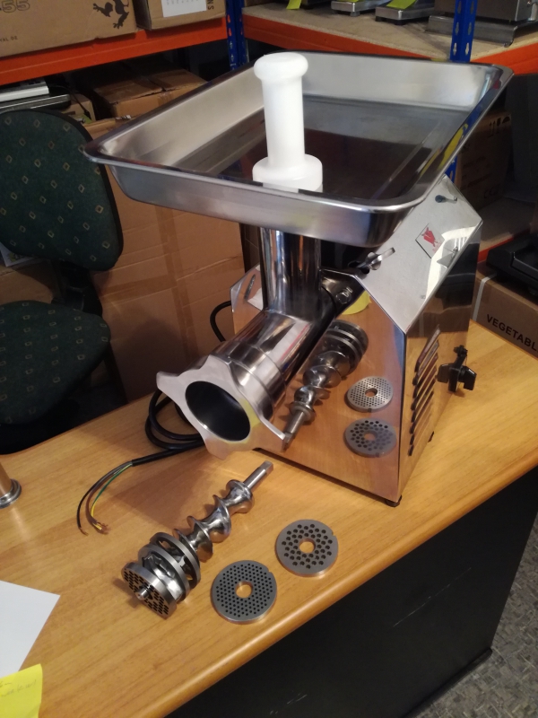 Der Fleischwolf FW1100-2 ist mit einem 400 V Drehstromstecker (Starkstrom) ausgestattet.