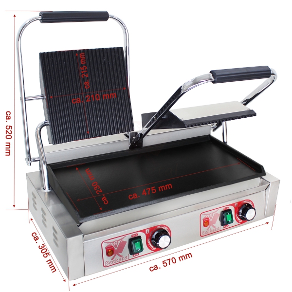 Kontaktni žar 3600 W z litoželezim pekačem 47 x 23cm. Primeren za meso, sendviče in burgerje. Žar je robustne izdelave (25kg), enostaven za uporabo in čiščenje.Opremljen je s temperaturnim stikalom (50 - 300° C)