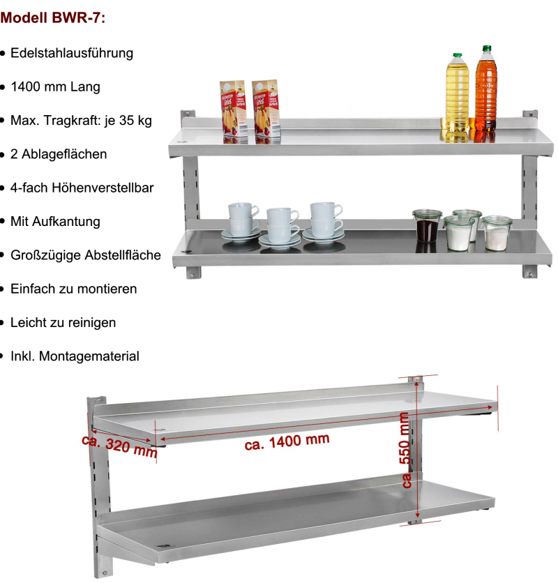 | BWR-7 | max. 35 kg | ca. 1400 x 320 mm | 2 | ca. 35 mm | ca. 10,7 kg | DA |