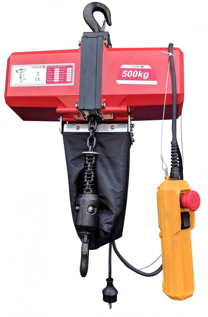 Cena z DDV:Električno verižno dvigalo z zmogljivostjo 500 kg in višino dviga 3 metre. Električna verižna dvigala so primerna predvsem za dvigovanje tovora, kot so: motorji, dvokolesniki, idealen pomočnik za dvigovanje težkih tovorov v delavnicah, garaži, skladišču, kmetijstvu in gozdarstvu.