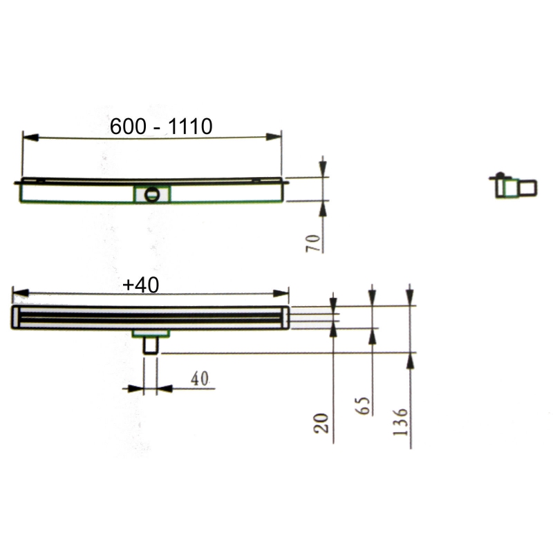 Cena z DDV:Tuš kanaleta inox. Dolžina 70cm. Odtočna kanaleta je v celoti izdelana iz nerjavečega inox (SS304) materiala. Kanaleta je opremljena z, po višini nastavljivimi nogicami.