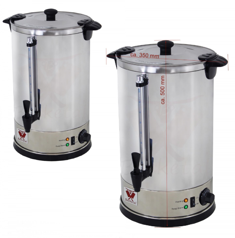 Grelnik vode je namenjen pripravi različnih toplih napitkov. Poleg priprave čaja in kave se lahko uporablja tudi za pripravo alkoholnih pijač, kot je kuhano vino. Tako je grelnik posebej primeren za uporabo v hotelih in restavracijah ter božičnih sejmih, tržnicah in raznih prireditvah. Grelnik je izdelan iz nerjavečega jekla, nosilni ročaji in podstavek pa iz umetne mase. Delovno temperaturo se lahko nastavlja s pomočjo gumba na spodnjem delu aparata med 55 in 100 °C. Kontrolni lučki prikazujeta način v katerem se naprava trenutno nahaja (kuhanje/ohranjanje toplote). Vgrajen termostat preprečuje morebitno pregrevanje naprave in tako zagotavlja varno in nemoteno uporabo grelnika.