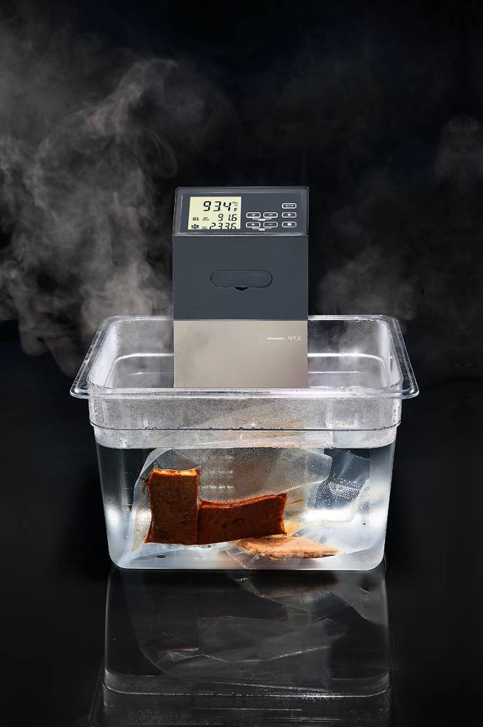 Sous Vide Universal Pro, je lep in kompakten sous vide aparat. Kuhanje Sous-vide z natančnostjo 0,1 ° C. Nastavljiv čas in temperatura.