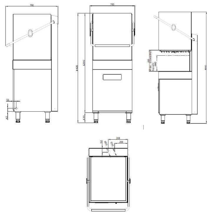 Pomivalni stroj tehta 100 kg in ima višino 1860 milimetrov, širino 700 milimetrov in globino 790 milimetrov.